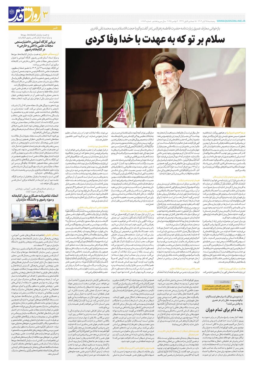 10786 - روزنامه قدس شماره ۱۰۷۸۶ - ۱۴۰۴-۰۸-۱۵