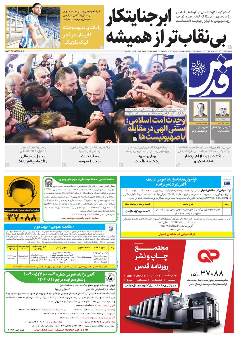 10787 - روزنامه قدس شماره ۱۰۷۸۷ - ۱۴۰۴-۰۸-۱۷