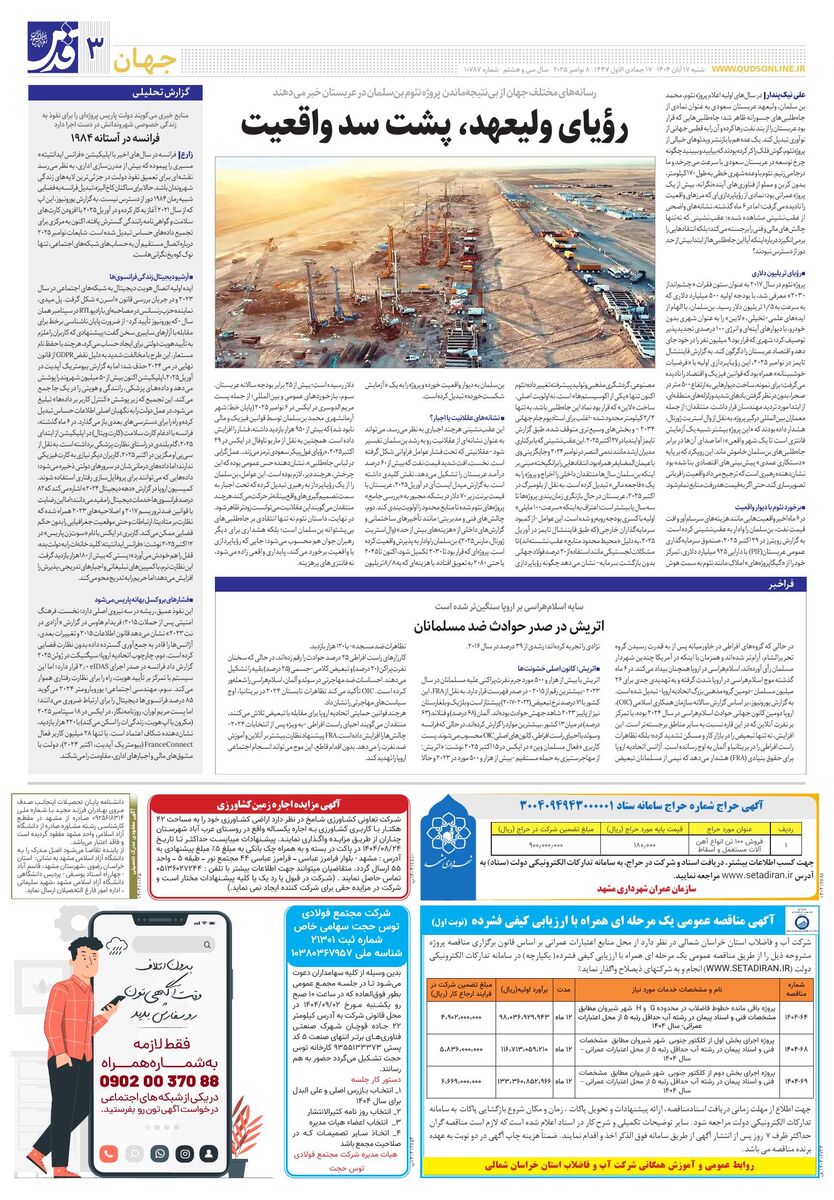 10787 - روزنامه قدس شماره ۱۰۷۸۷ - ۱۴۰۴-۰۸-۱۷