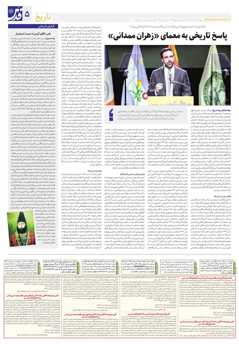 10789 - روزنامه قدس شماره ۱۰۷۸۹ - ۱۴۰۴-۰۸-۱۹