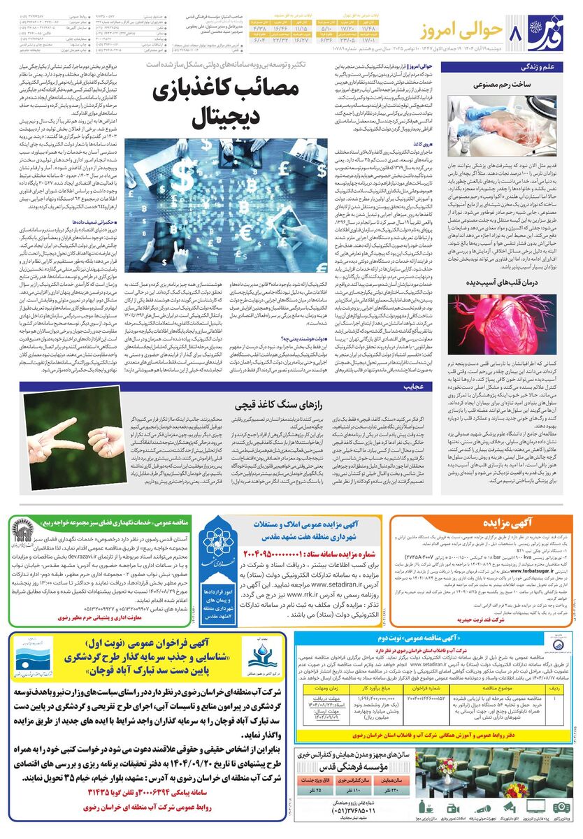 10789 - روزنامه قدس شماره ۱۰۷۸۹ - ۱۴۰۴-۰۸-۱۹