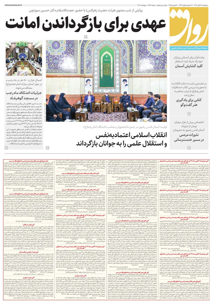 10792 - روزنامه قدس شماره ۱۰۷۹۲ - ۱۴۰۴-۰۸-۲۲