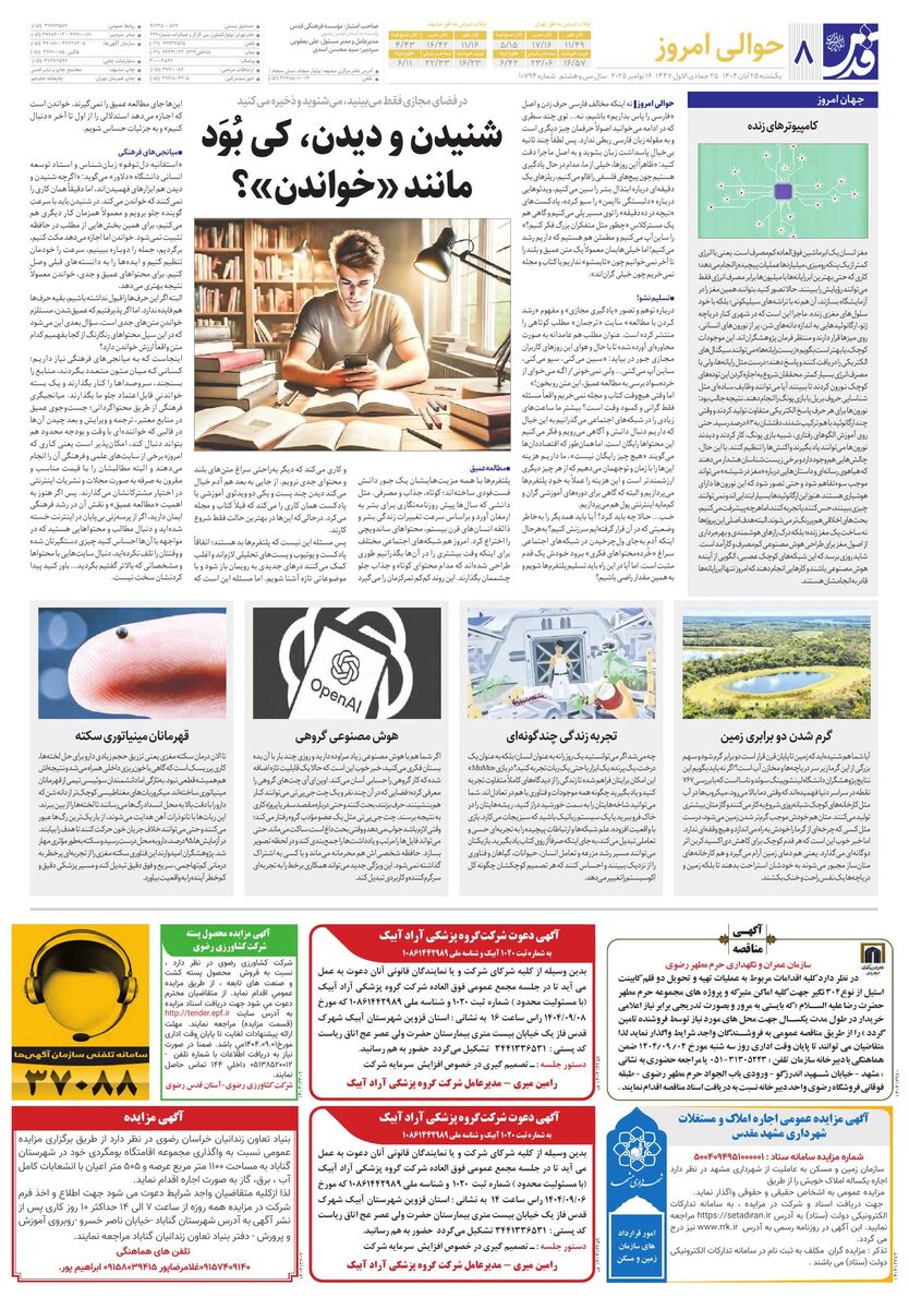 10794 - روزنامه قدس شماره ۱۰۷۹۴ - ۱۴۰۴-۰۸-۲۵