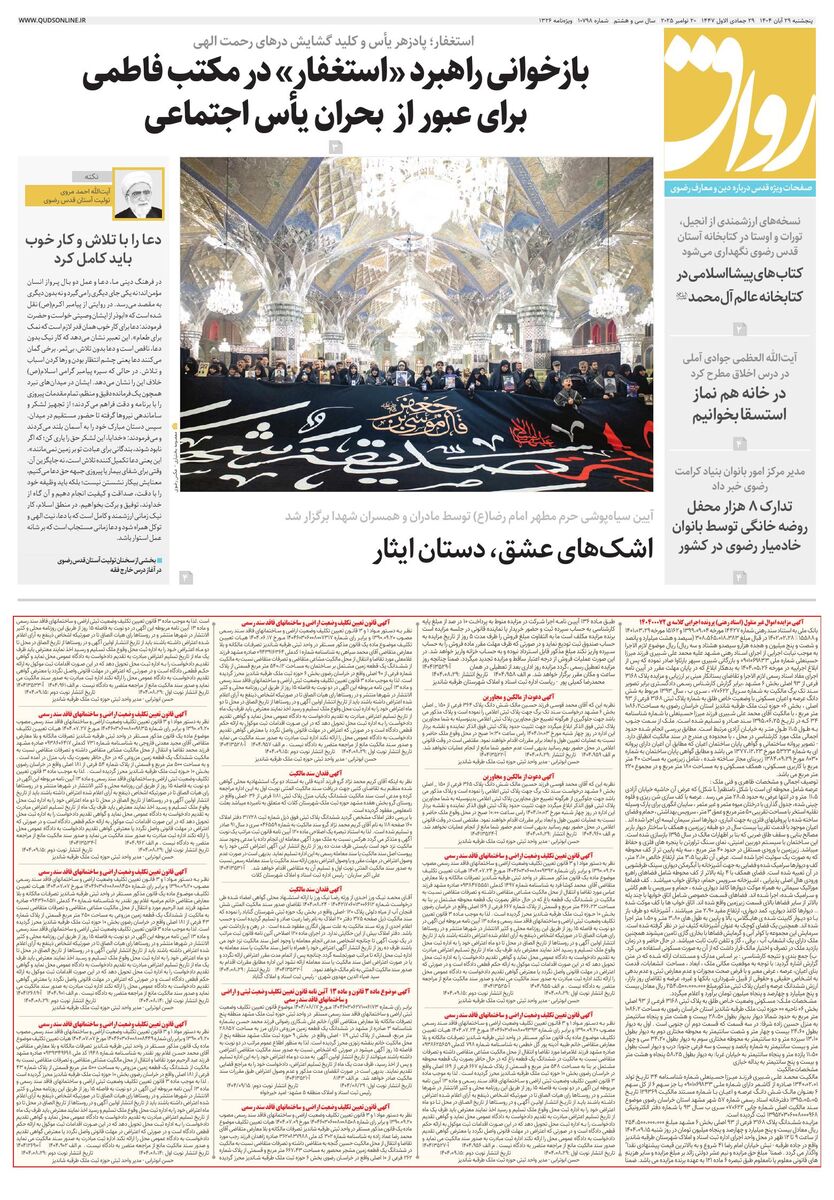 10798 - روزنامه قدس شماره ۱۰۷۹۸ - ۱۴۰۴-۰۸-۲۹