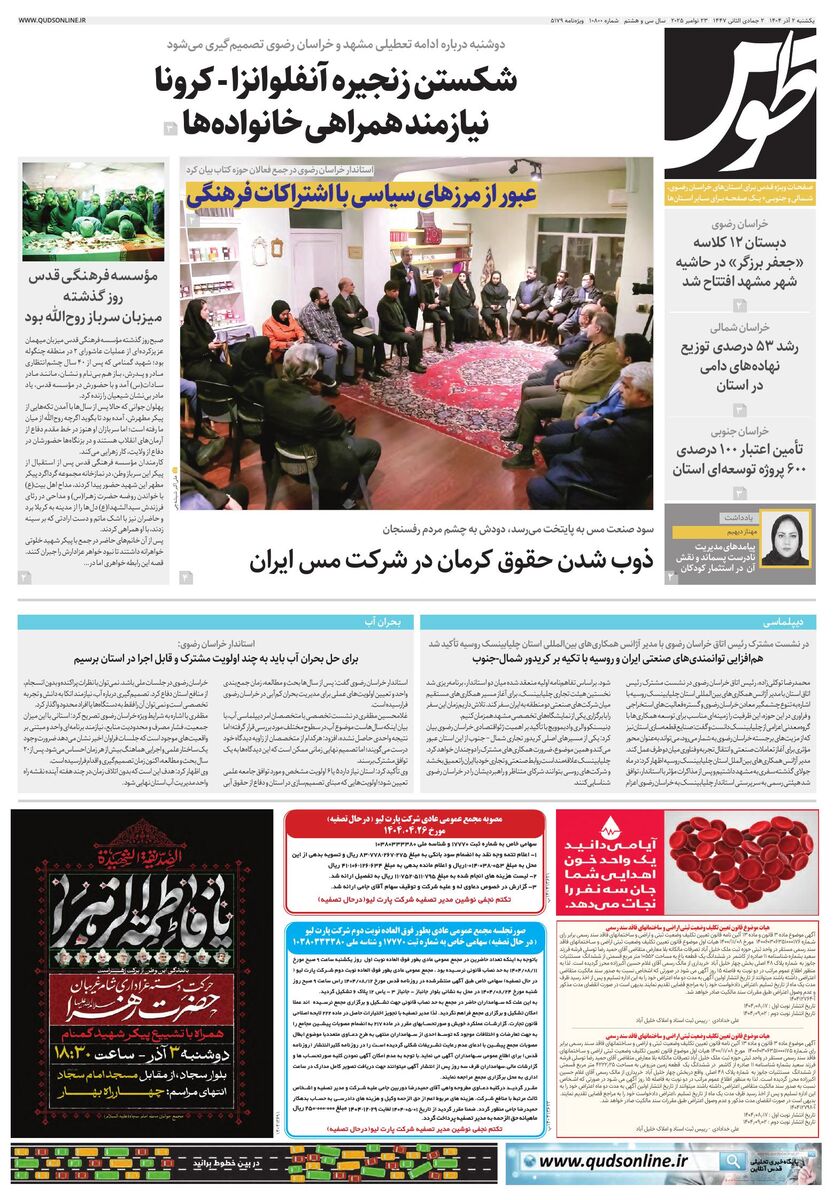 10800 - روزنامه قدس شماره ۱۰۸۰۰ - ۱۴۰۴-۰۹-۰۲