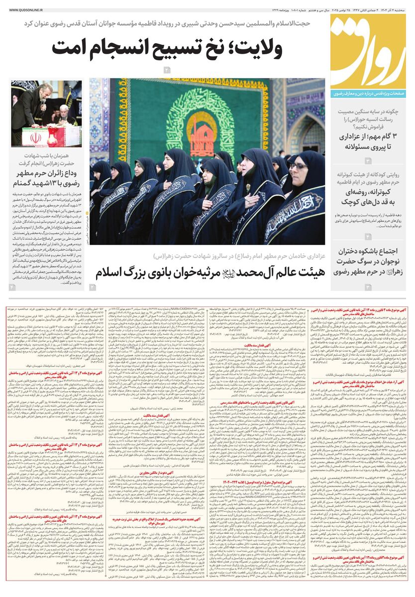 10801 - روزنامه قدس شماره ۱۰۸۰۱ - ۱۴۰۴-۰۹-۰۴