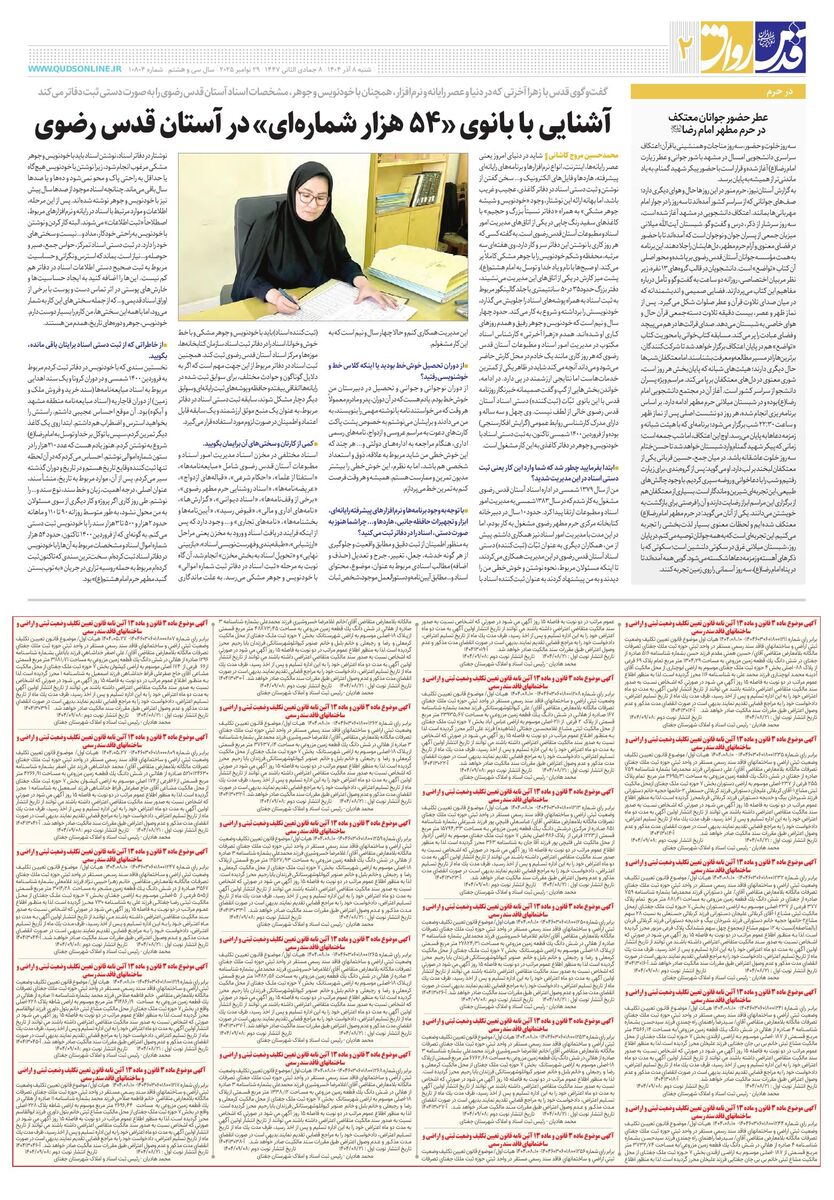 آشنایی با بانوی «۵۴ هزار شمارهای» در آستان قدس رضوی