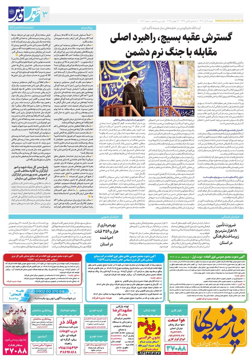 10804 - روزنامه قدس شماره ۱۰۸۰۴ - ۱۴۰۴-۰۹-۰۸