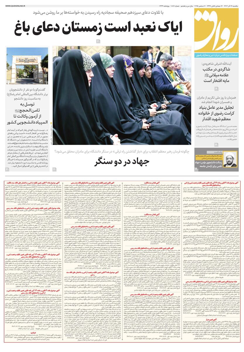 10811 - روزنامه قدس شماره ۱۰۸۱۱ - ۱۴۰۴-۰۹-۱۶