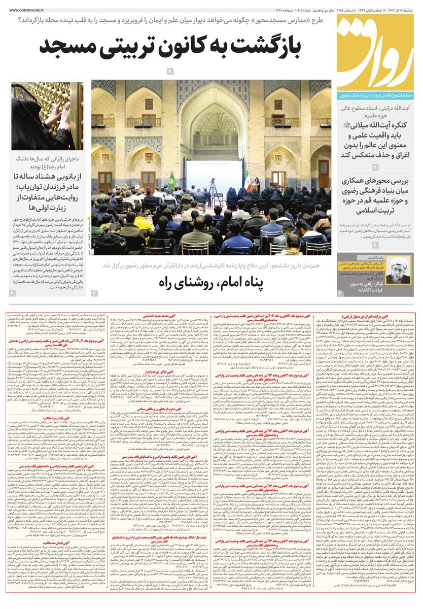 10812 - روزنامه قدس شماره ۱۰۸۱۲ - ۱۴۰۴-۰۹-۱۷