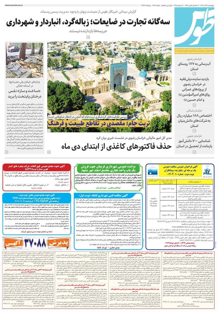 10814 - روزنامه قدس شماره ۱۰۸۱۴ - ۱۴۰۴-۰۹-۱۹