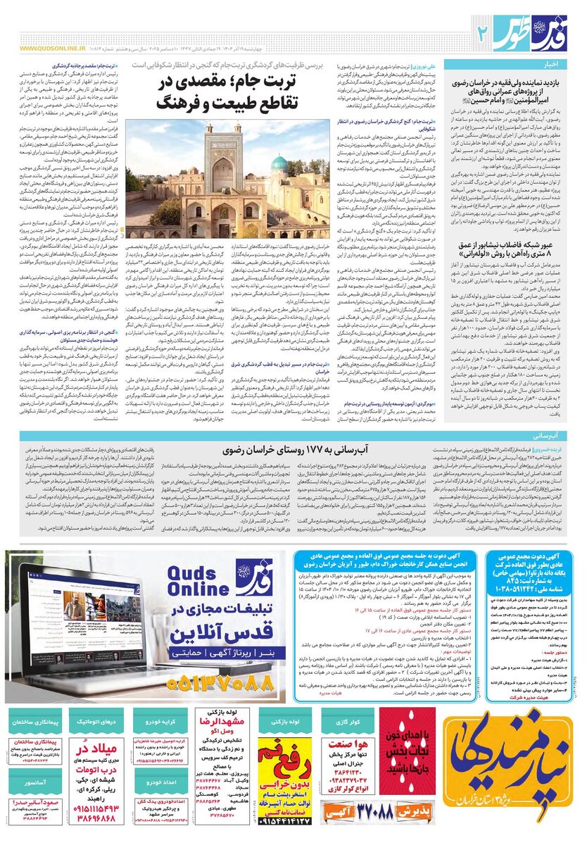 10814 - روزنامه قدس شماره ۱۰۸۱۴ - ۱۴۰۴-۰۹-۱۹