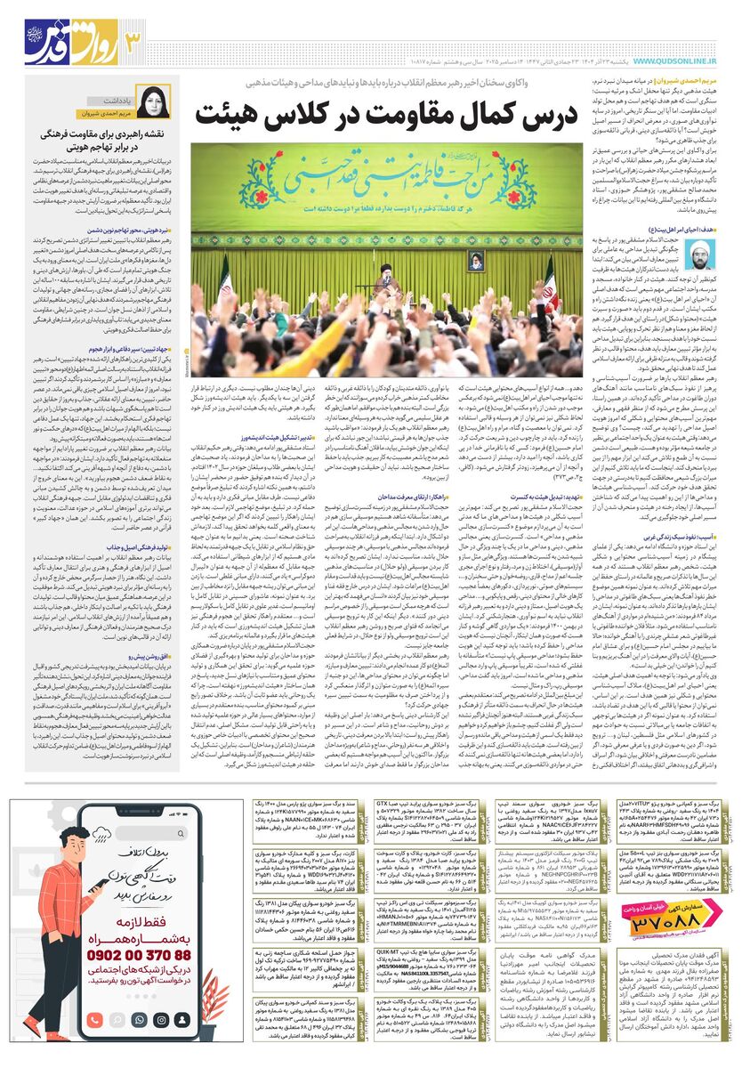 10817 - روزنامه قدس شماره ۱۰۸۱۷ - ۱۴۰۴-۰۹-۲۳