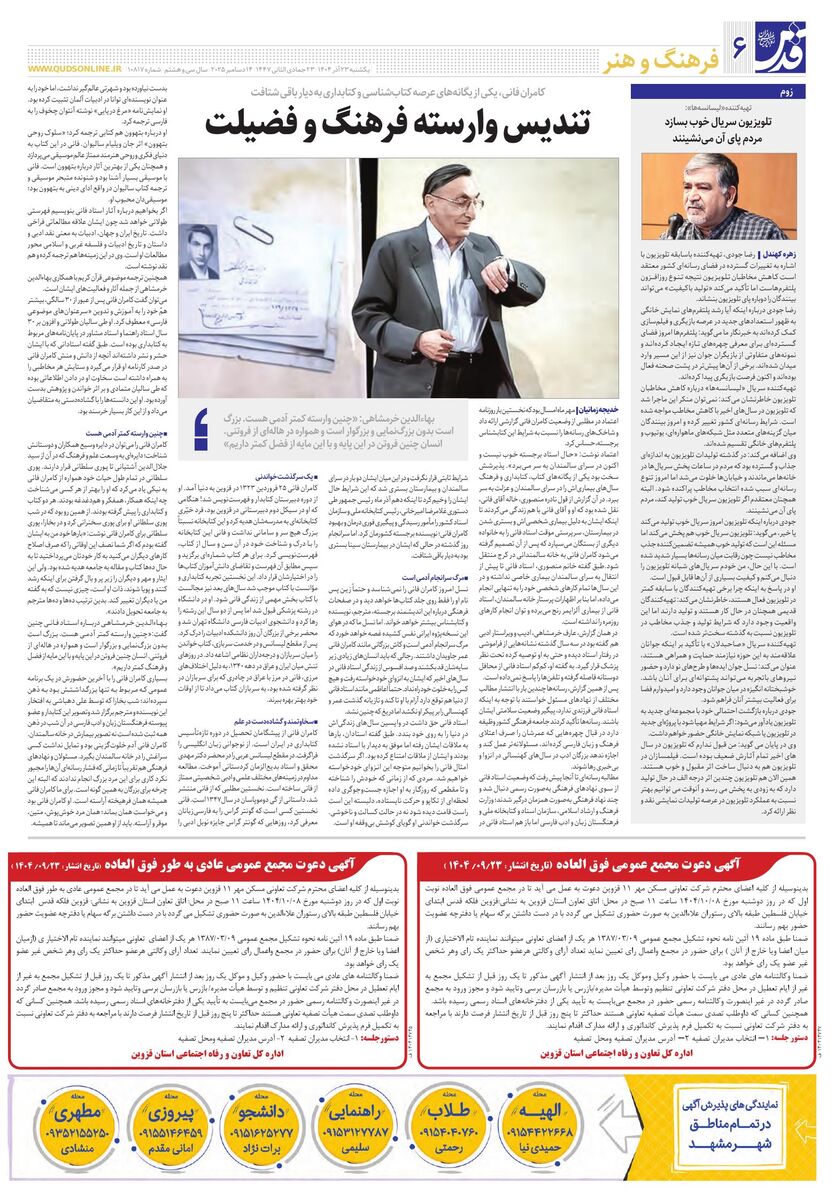 10817 - روزنامه قدس شماره ۱۰۸۱۷ - ۱۴۰۴-۰۹-۲۳