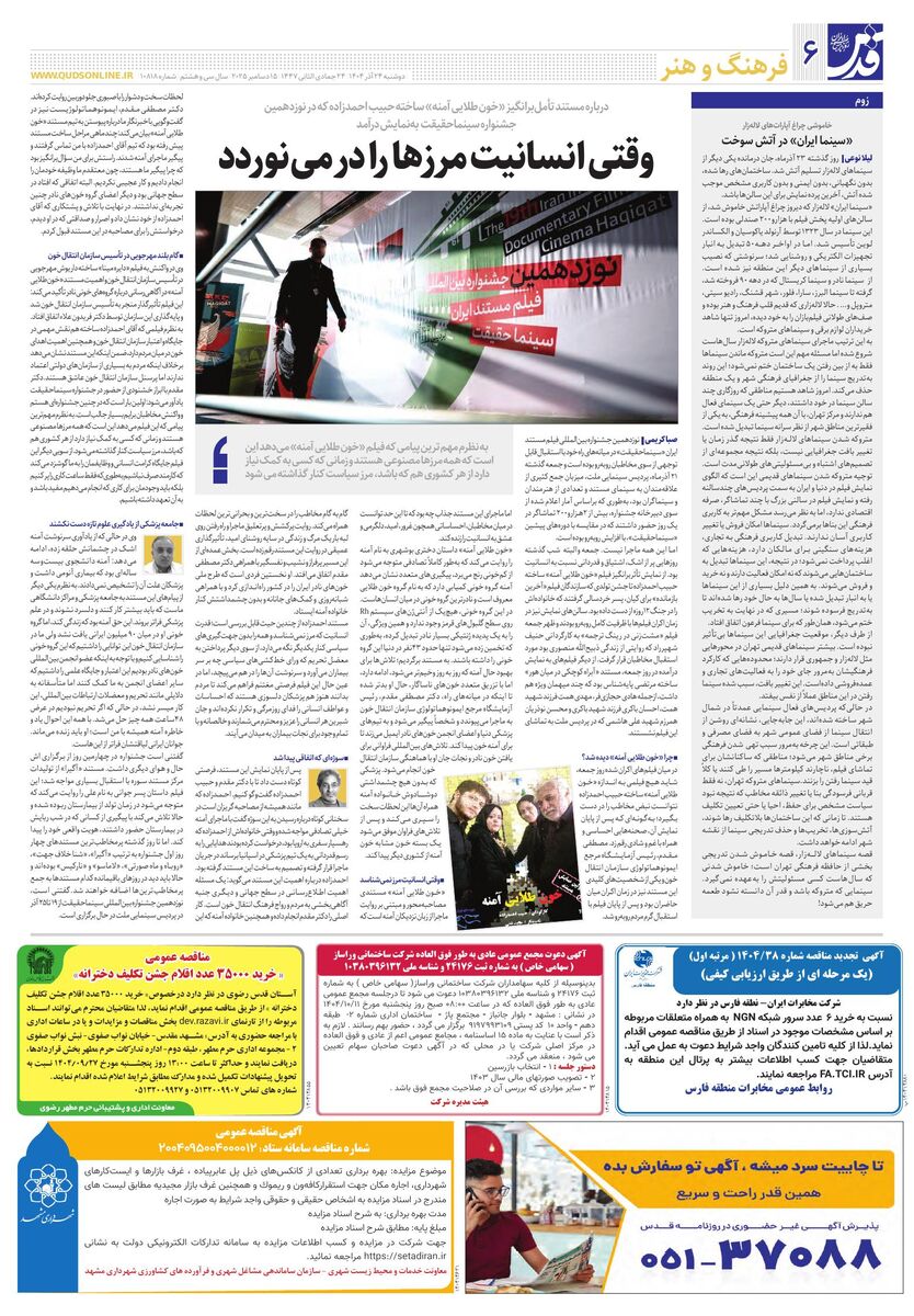 10818 - روزنامه قدس شماره ۱۰۸۱۸ - ۱۴۰۴-۰۹-۲۴