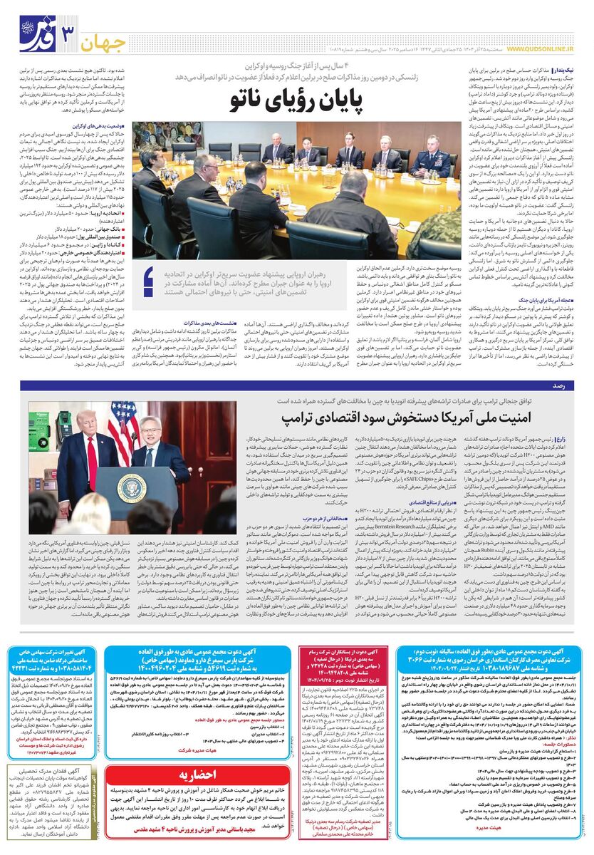 10819 - روزنامه قدس شماره ۱۰۸۱۹ - ۱۴۰۴-۰۹-۲۵