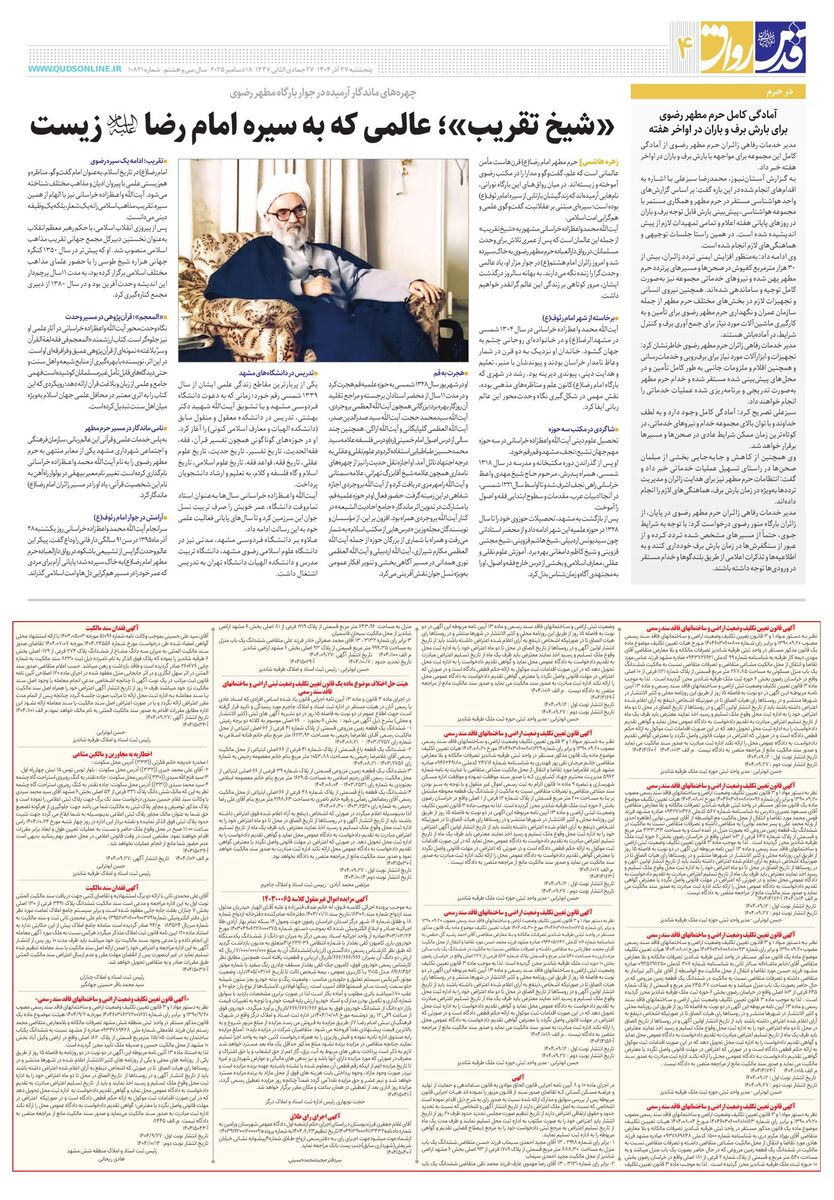 10821 - روزنامه قدس شماره ۱۰۸۲۱ - ۱۴۰۴-۰۹-۲۷