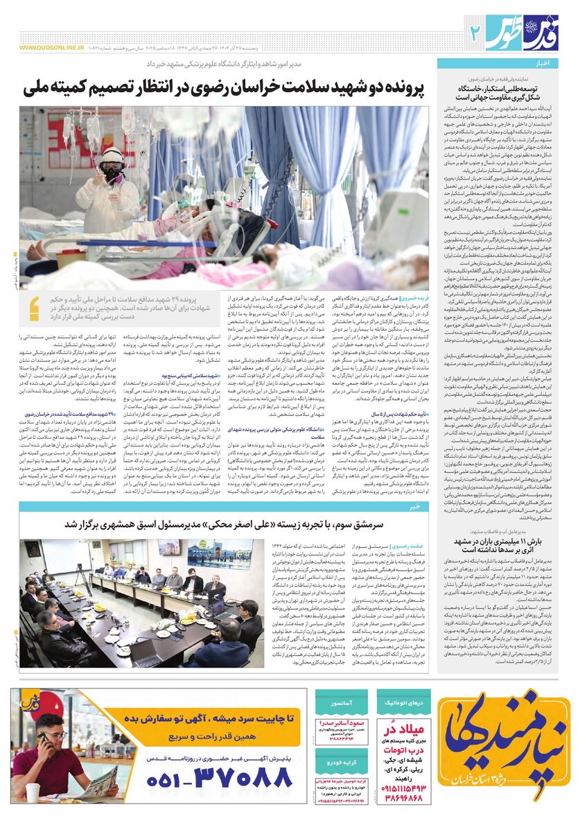 10821 - روزنامه قدس شماره ۱۰۸۲۱ - ۱۴۰۴-۰۹-۲۷