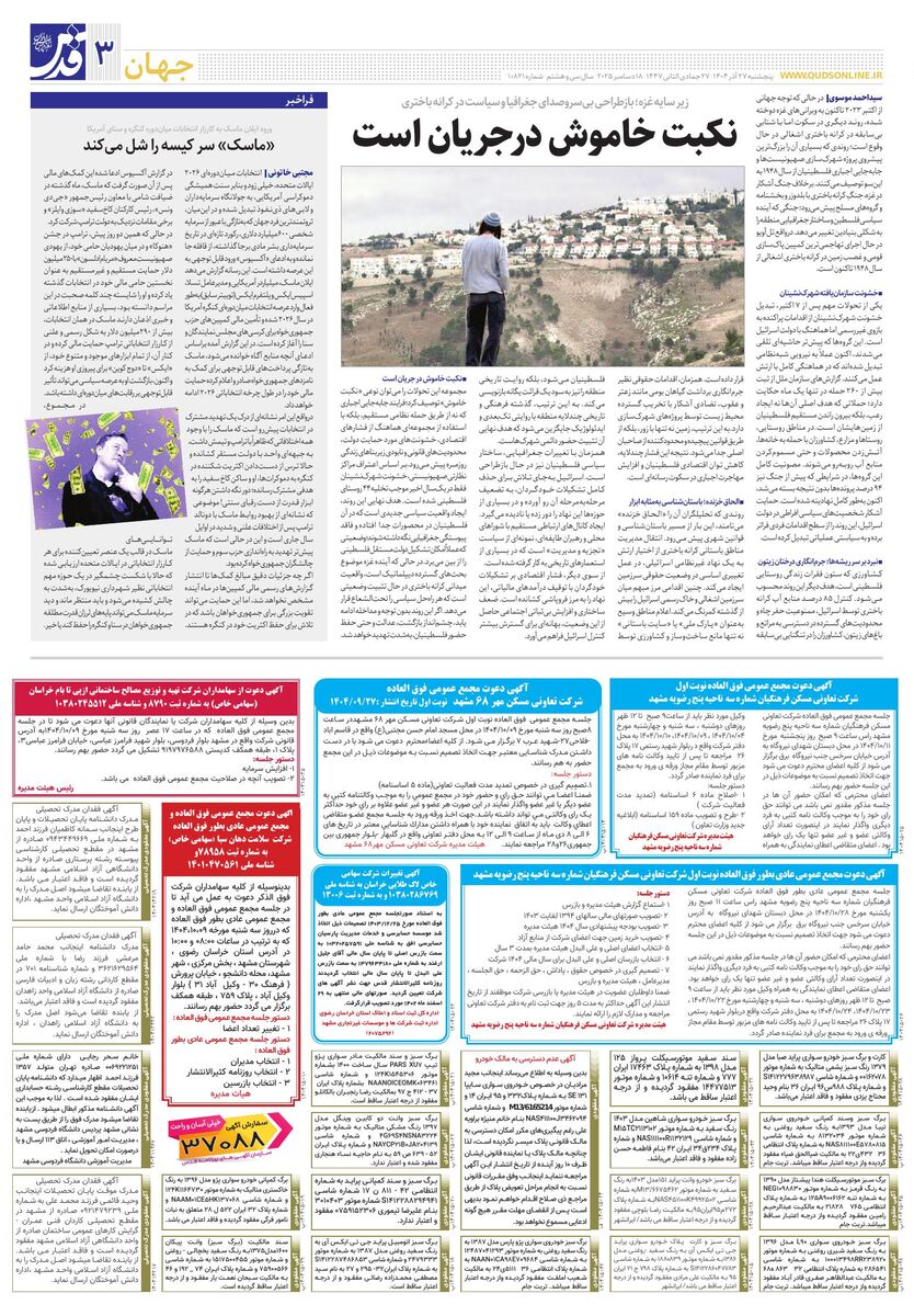 10821 - روزنامه قدس شماره ۱۰۸۲۱ - ۱۴۰۴-۰۹-۲۷