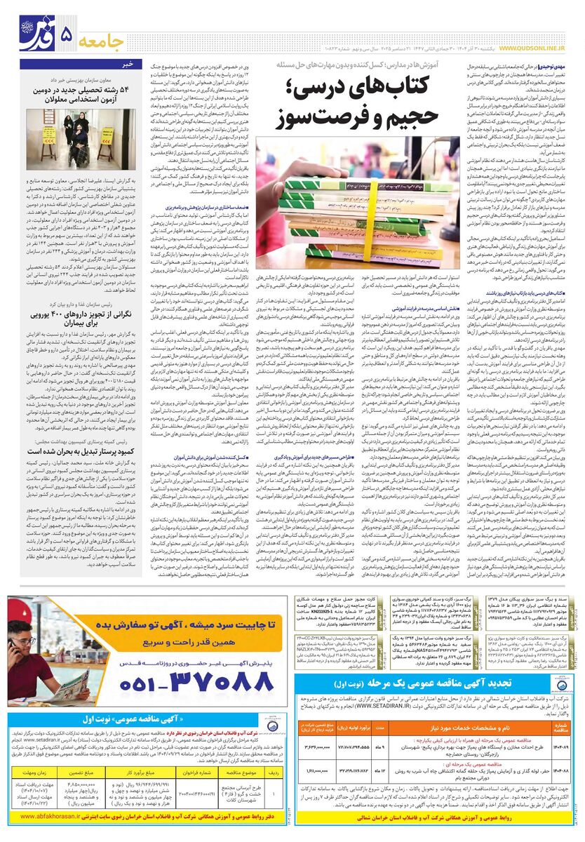 10823 - روزنامه قدس شماره ۱۰۸۲۳ - ۱۴۰۴-۰۹-۳۰