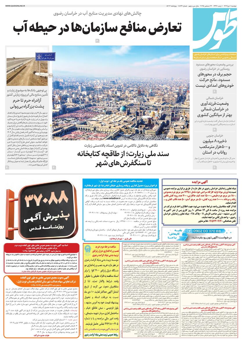 10824 - روزنامه قدس شماره ۱۰۸۲۴ - ۱۴۰۴-۱۰-۰۱