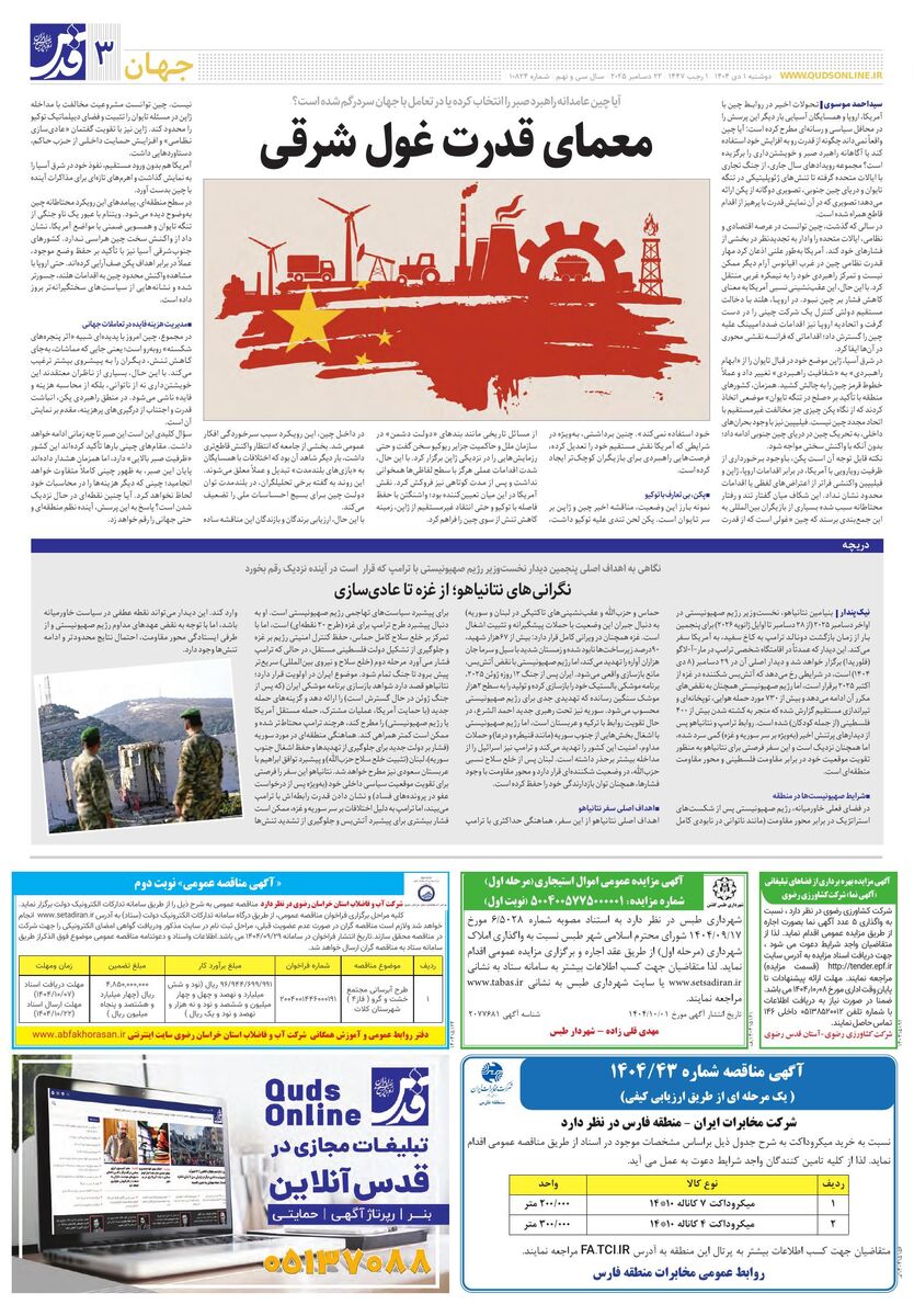 10824 - روزنامه قدس شماره ۱۰۸۲۴ - ۱۴۰۴-۱۰-۰۱