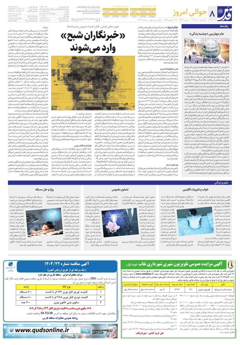 10824 - روزنامه قدس شماره ۱۰۸۲۴ - ۱۴۰۴-۱۰-۰۱