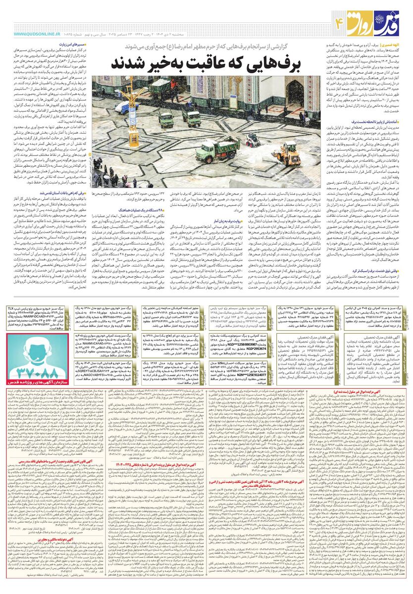 10825 - روزنامه قدس شماره ۱۰۸۲۵ - ۱۴۰۴-۱۰-۰۲