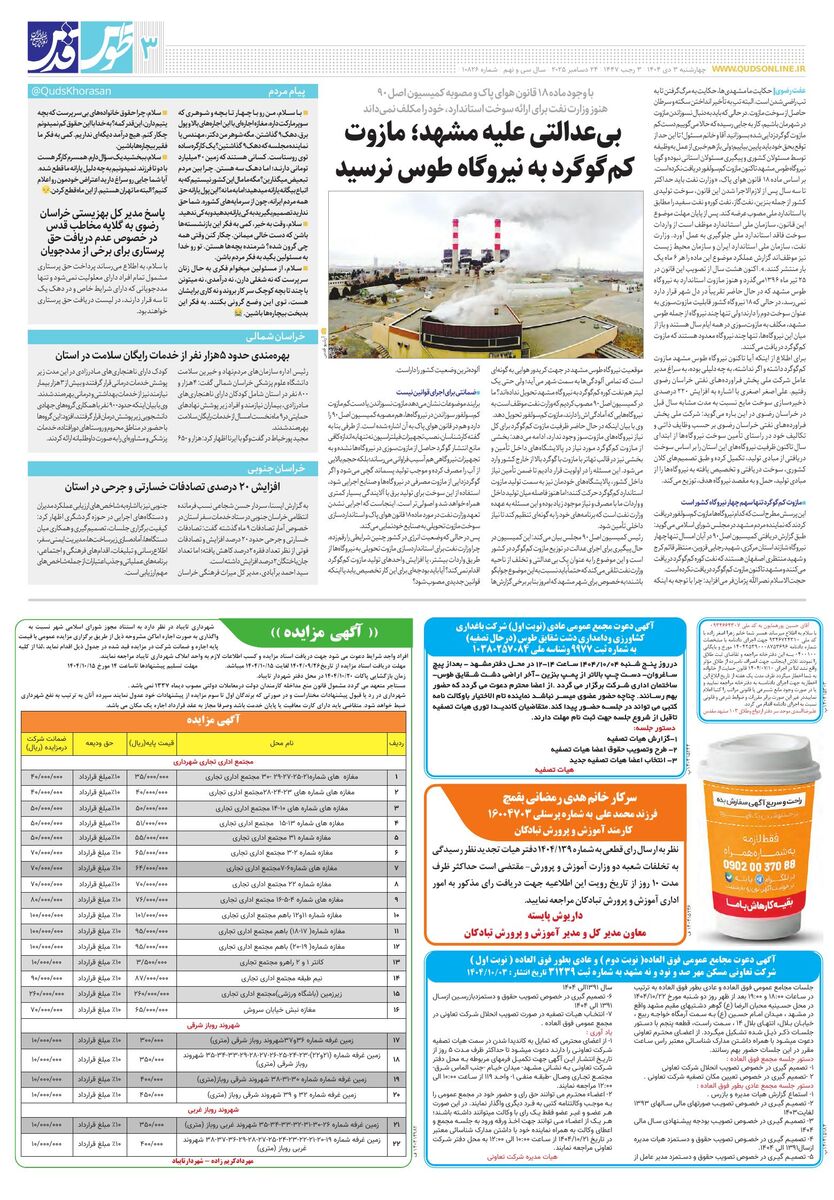 10826 - روزنامه قدس شماره ۱۰۸۲۶ - ۱۴۰۴-۱۰-۰۳