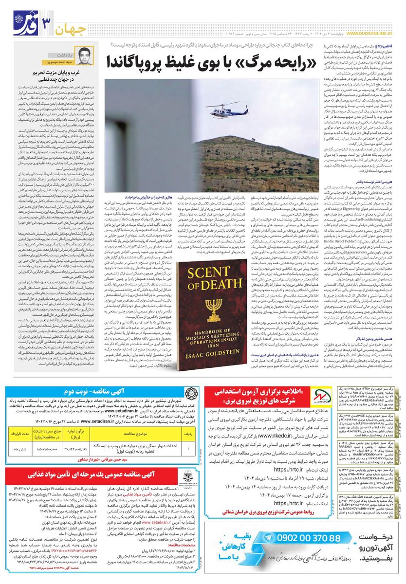 10826 - روزنامه قدس شماره ۱۰۸۲۶ - ۱۴۰۴-۱۰-۰۳