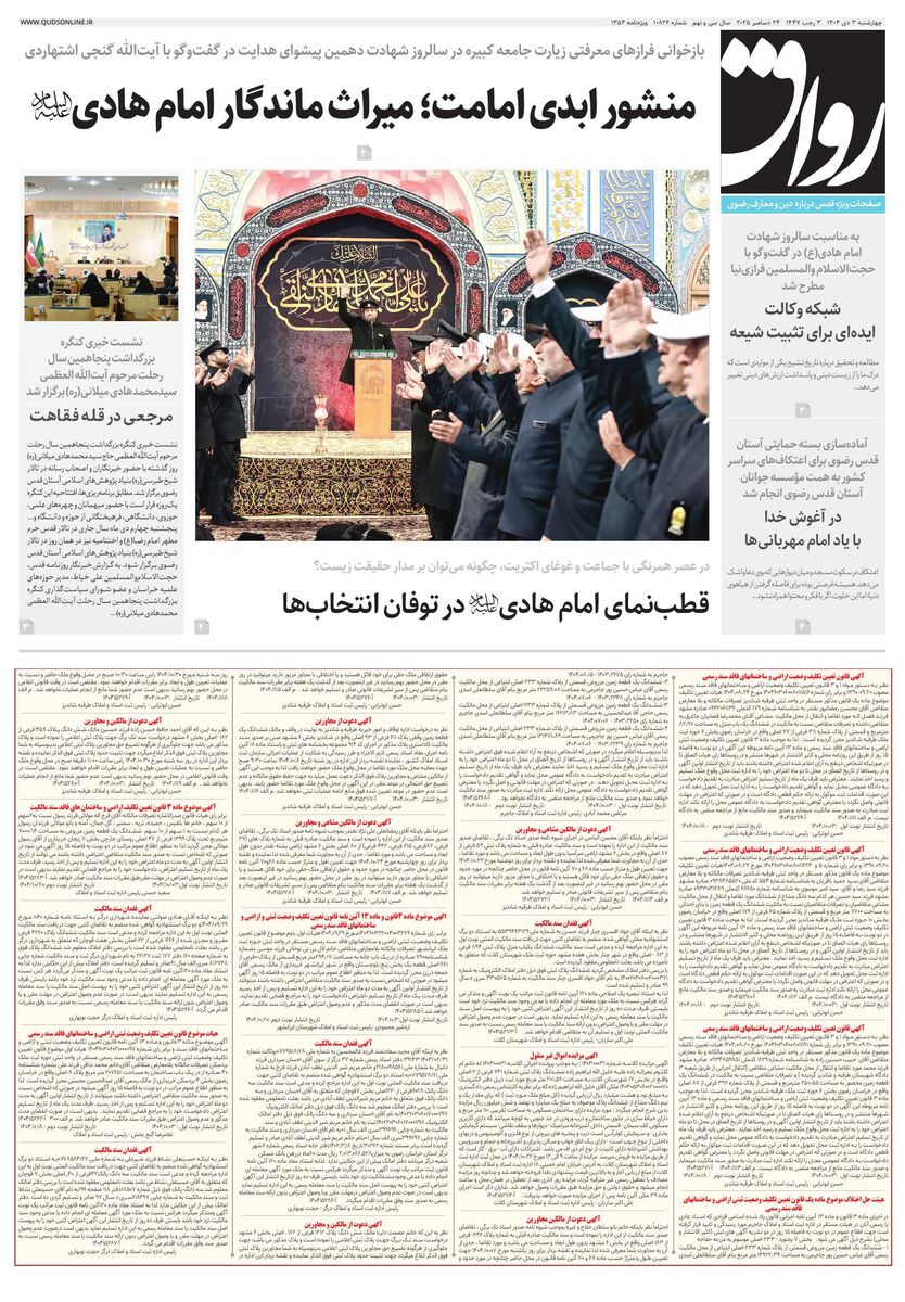 10826 - روزنامه قدس شماره ۱۰۸۲۶ - ۱۴۰۴-۱۰-۰۳
