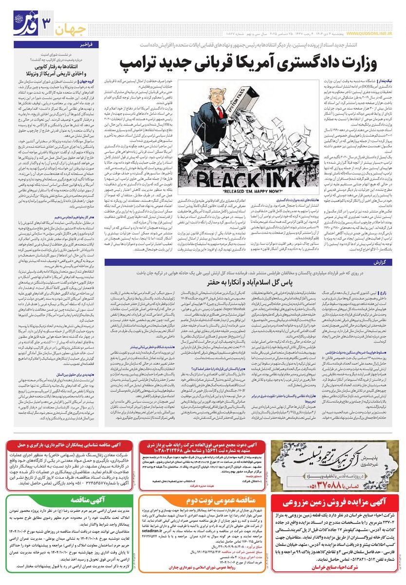 10827 - روزنامه قدس شماره ۱۰۸۲۷ - ۱۴۰۴-۱۰-۰۴
