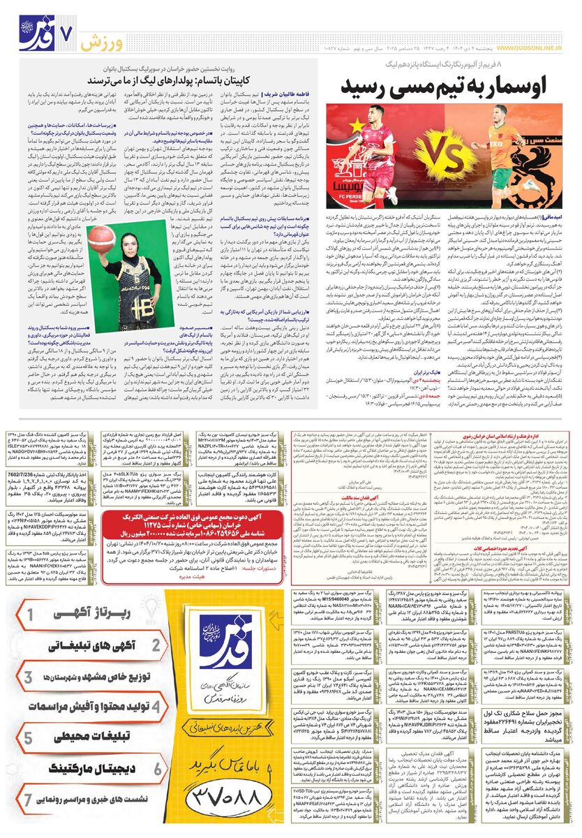 10827 - روزنامه قدس شماره ۱۰۸۲۷ - ۱۴۰۴-۱۰-۰۴