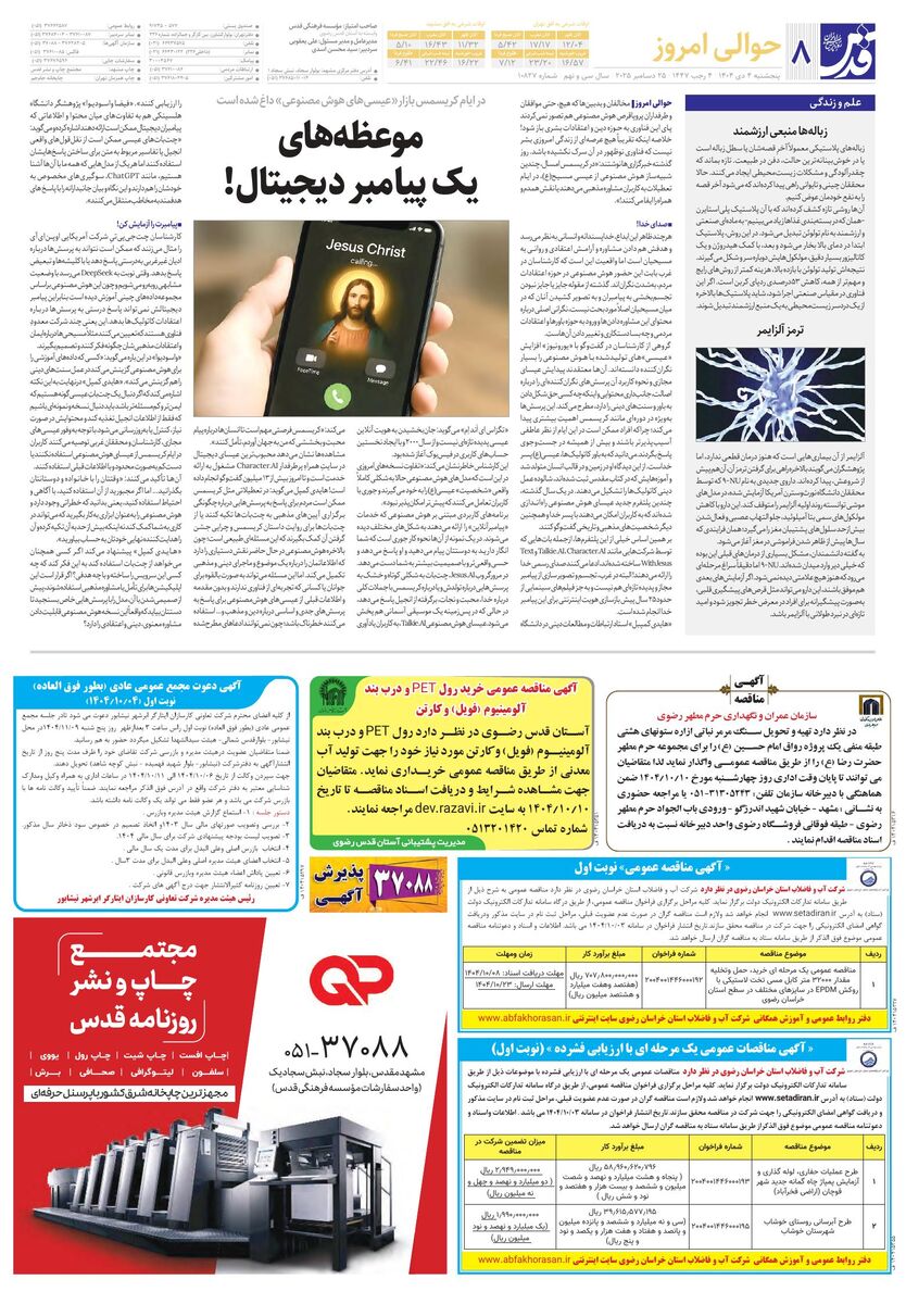 10827 - روزنامه قدس شماره ۱۰۸۲۷ - ۱۴۰۴-۱۰-۰۴