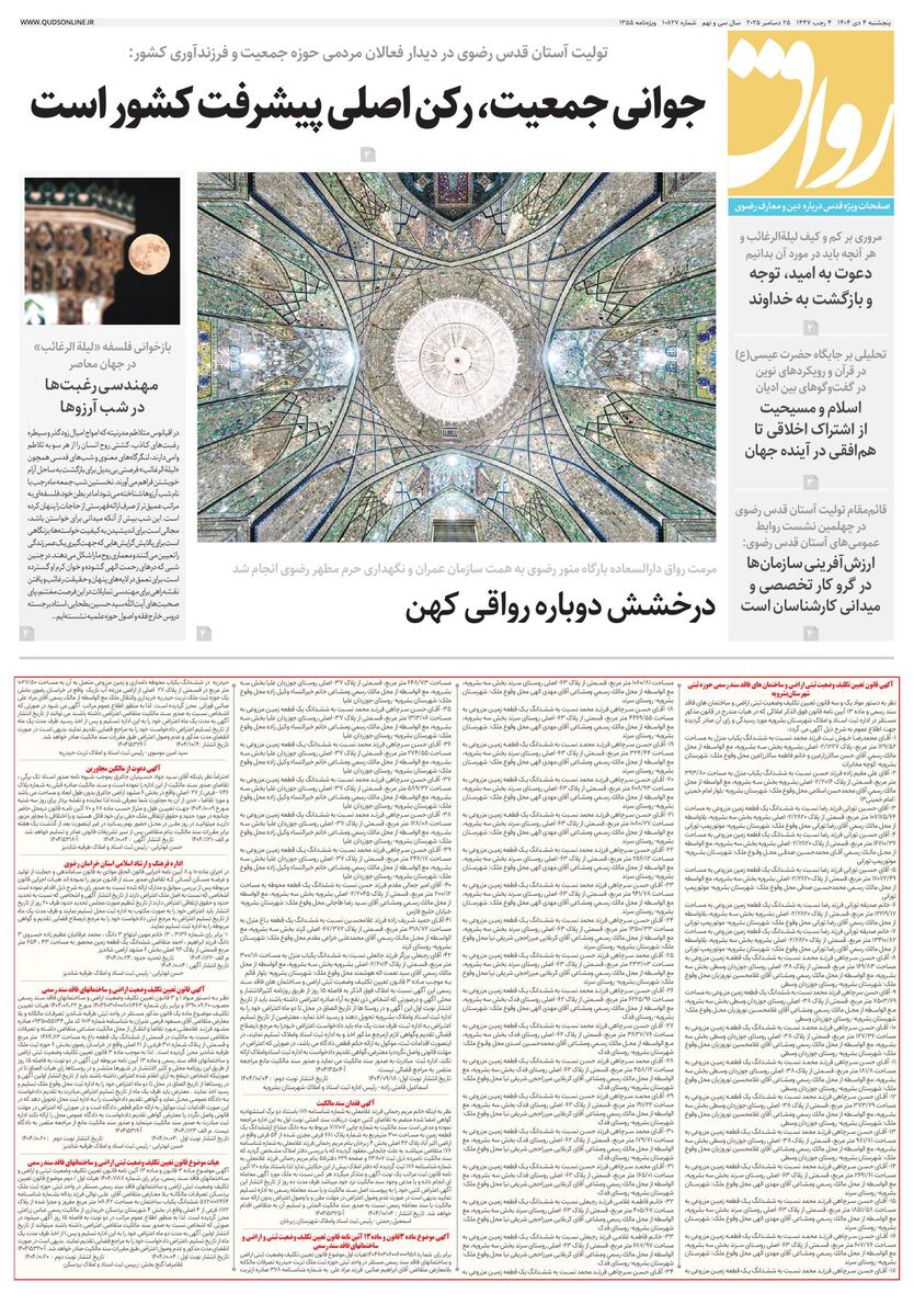 10827 - روزنامه قدس شماره ۱۰۸۲۷ - ۱۴۰۴-۱۰-۰۴