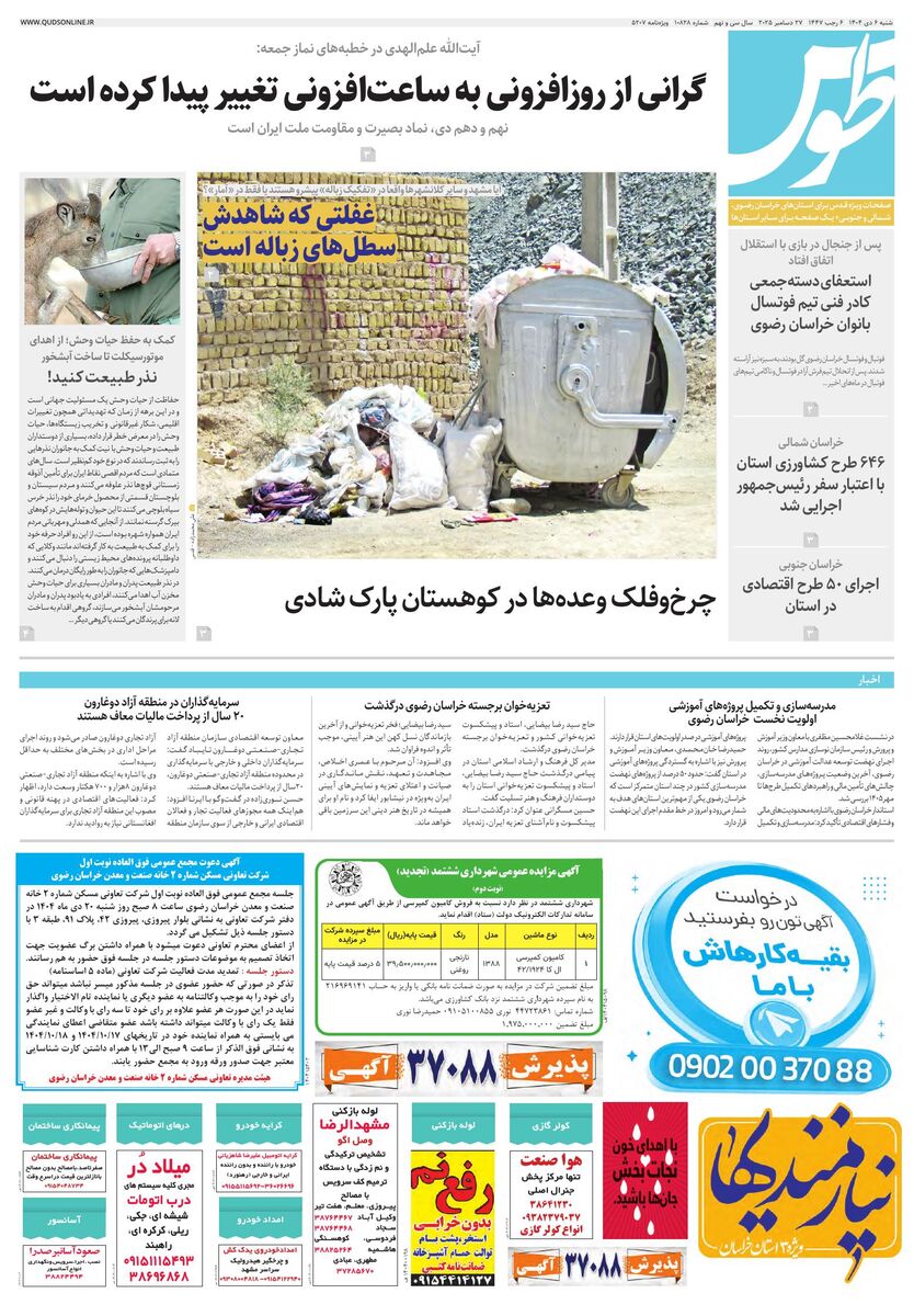10828 - روزنامه قدس شماره ۱۰۸۲۸ - ۱۴۰۴-۱۰-۰۶