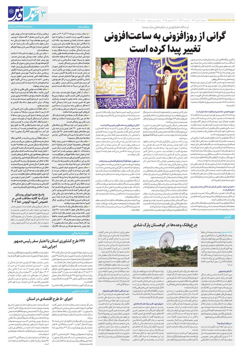 10828 - روزنامه قدس شماره ۱۰۸۲۸ - ۱۴۰۴-۱۰-۰۶