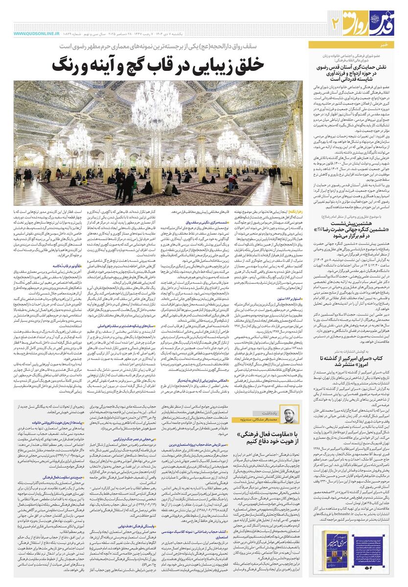 10829 - روزنامه قدس شماره ۱۰۸۲۹ - ۱۴۰۴-۱۰-۰۷