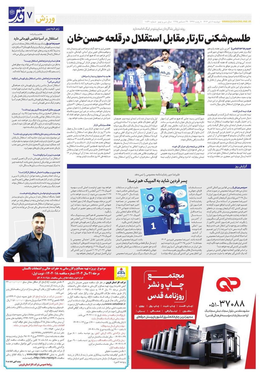 10830 - روزنامه قدس شماره ۱۰۸۳۰ - ۱۴۰۴-۱۰-۰۸