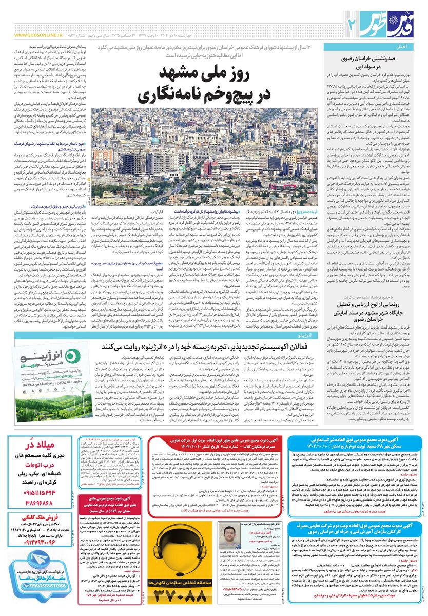 10832 - روزنامه قدس شماره ۱۰۸۳۲ - ۱۴۰۴-۱۰-۱۰