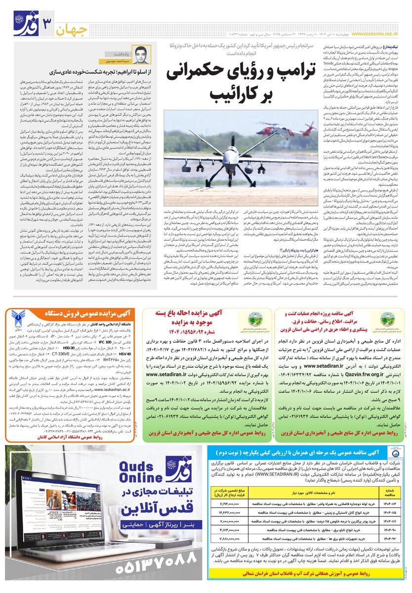 10832 - روزنامه قدس شماره ۱۰۸۳۲ - ۱۴۰۴-۱۰-۱۰