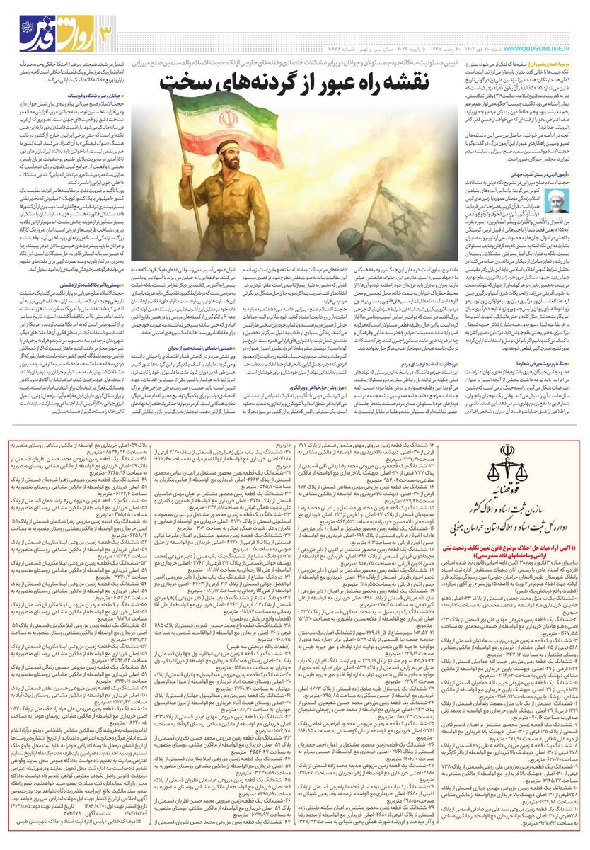 10838 - روزنامه قدس شماره ۱۰۸۳۸ - ۱۴۰۴-۱۰-۲۰