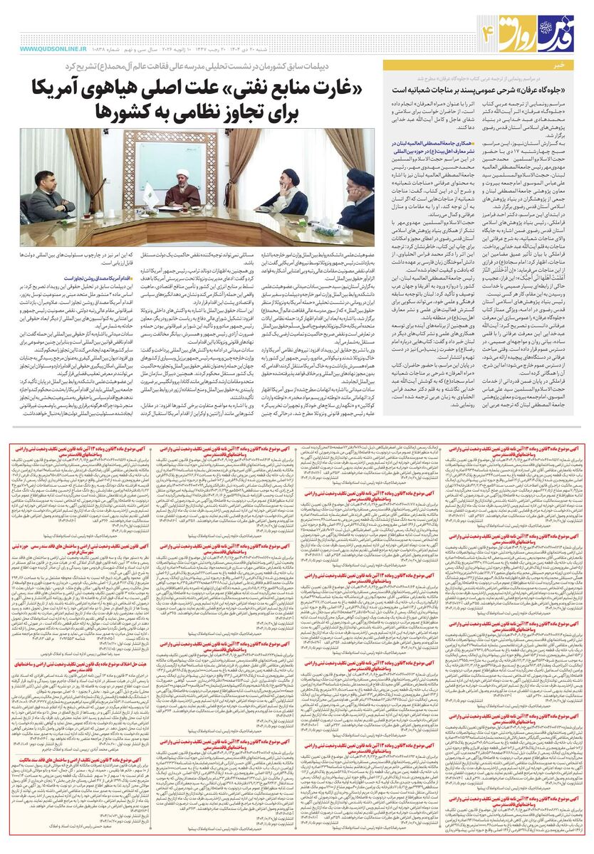 10838 - روزنامه قدس شماره ۱۰۸۳۸ - ۱۴۰۴-۱۰-۲۰