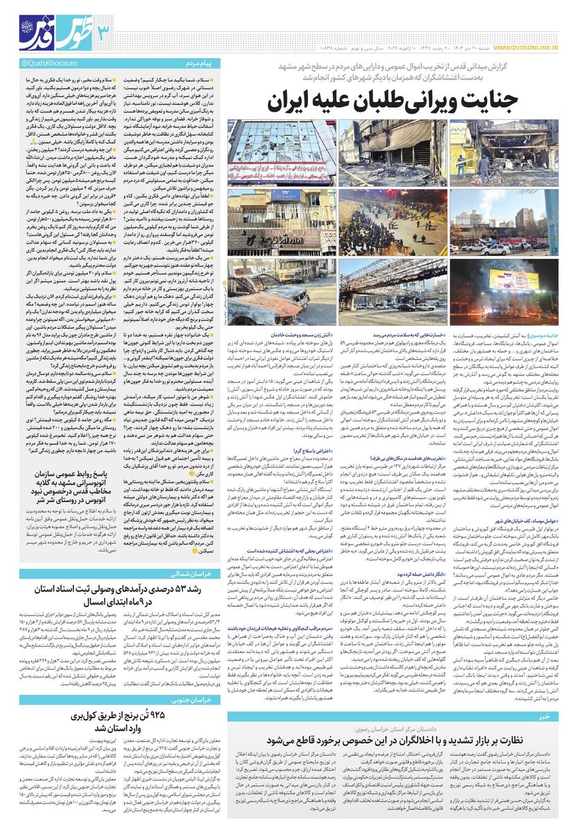 10838 - روزنامه قدس شماره ۱۰۸۳۸ - ۱۴۰۴-۱۰-۲۰