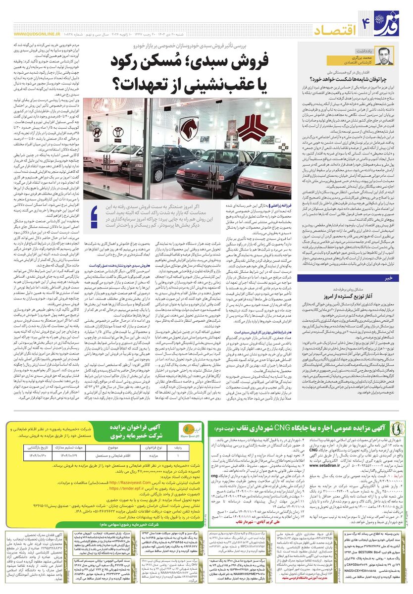 10838 - روزنامه قدس شماره ۱۰۸۳۸ - ۱۴۰۴-۱۰-۲۰