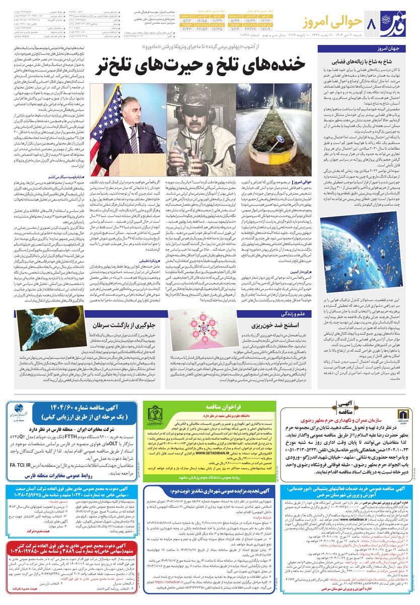 10838 - روزنامه قدس شماره ۱۰۸۳۸ - ۱۴۰۴-۱۰-۲۰