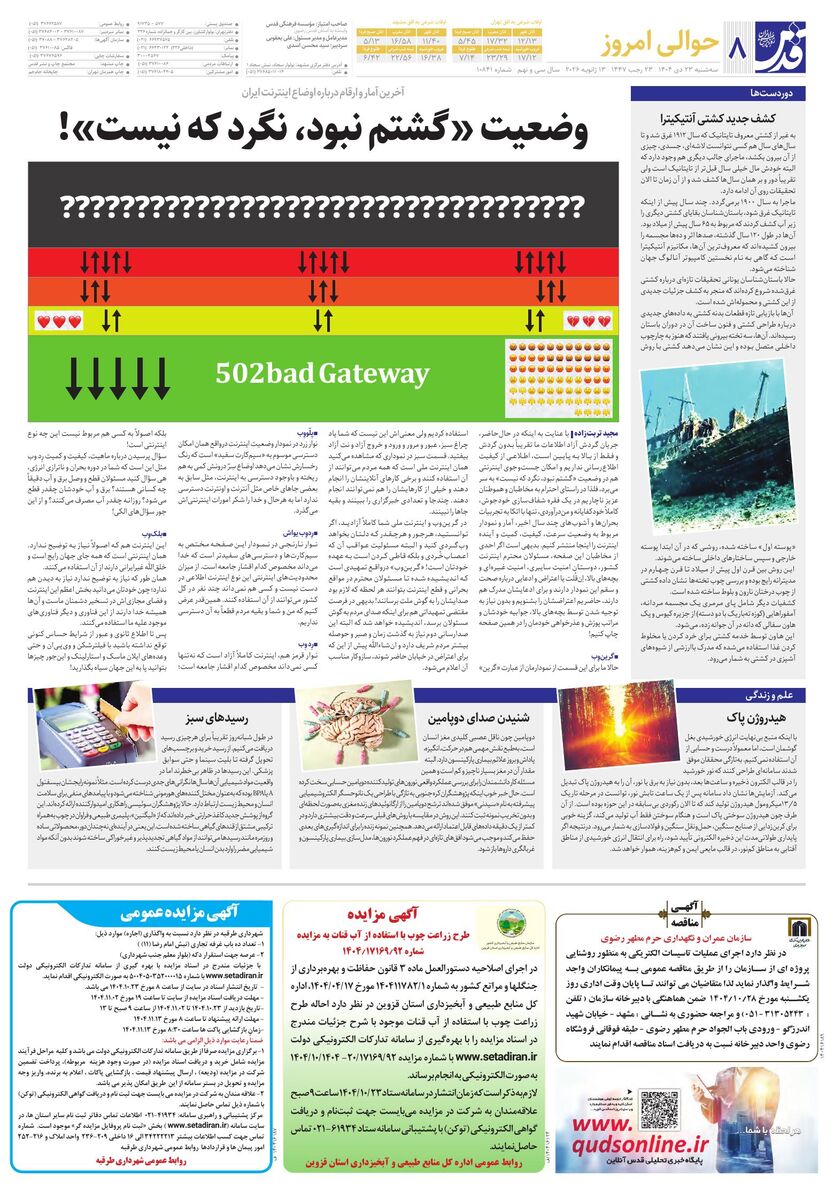 10841 - روزنامه قدس شماره ۱۰۸۴۱ - ۱۴۰۴-۱۰-۲۳