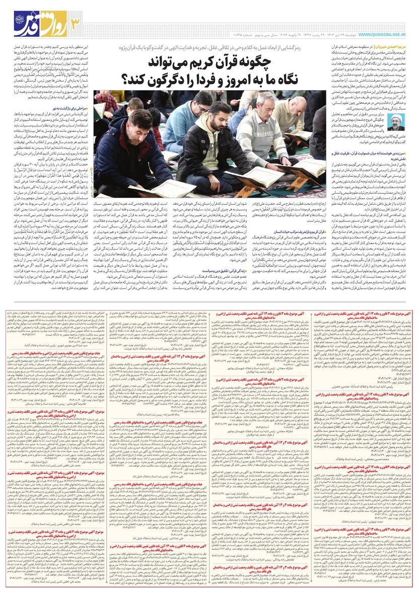 10845 - روزنامه قدس شماره ۱۰۸۴۵ - ۱۴۰۴-۱۰-۲۹