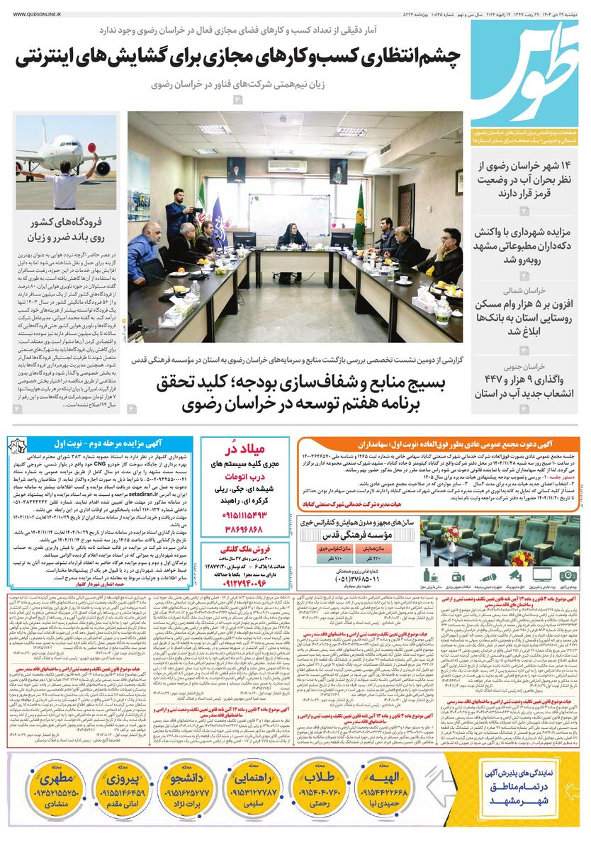 10845 - روزنامه قدس شماره ۱۰۸۴۵ - ۱۴۰۴-۱۰-۲۹