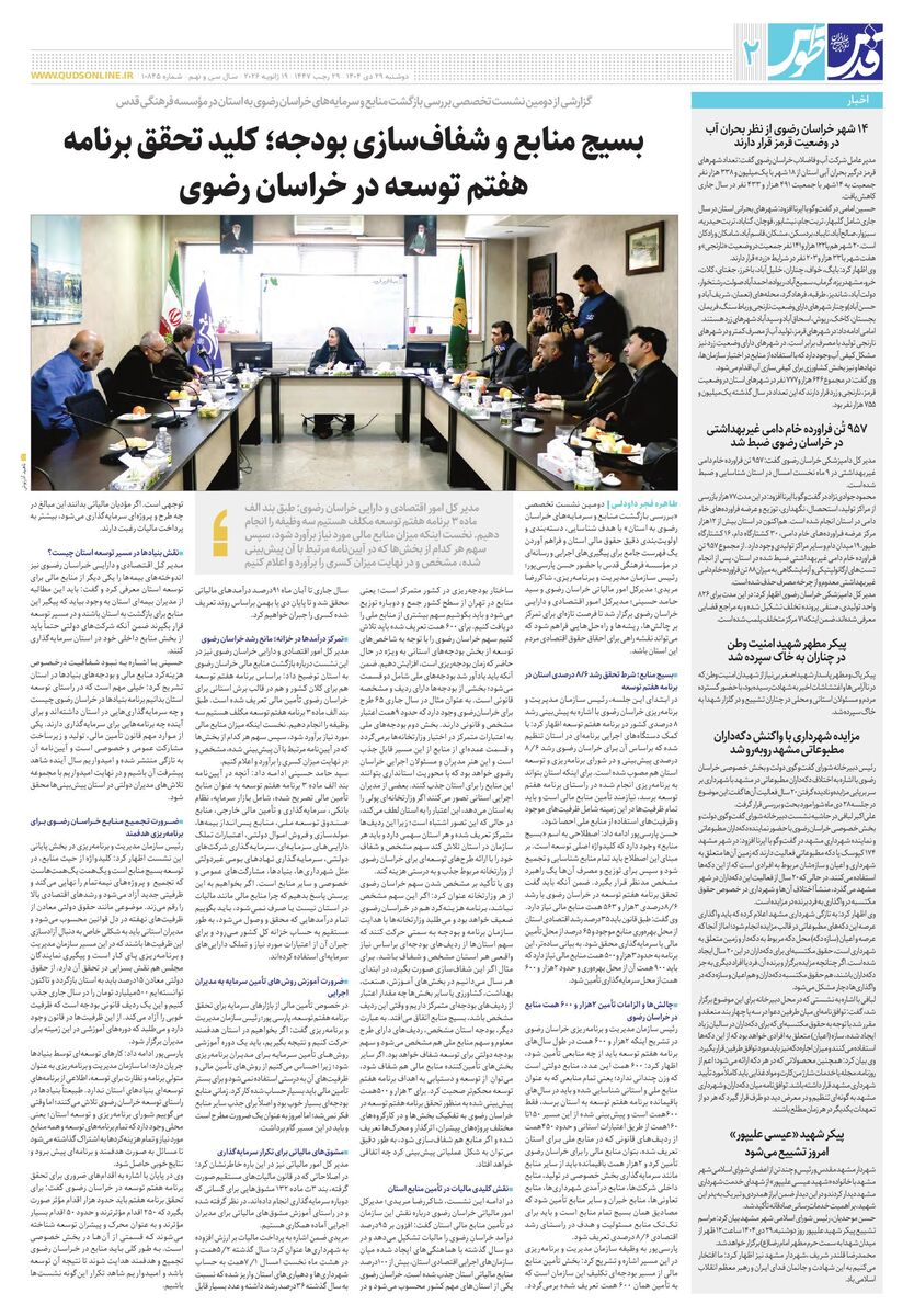بسیج منابع و شفافسازی بودجه؛ کلید تحقق برنامه هفتم توسعه در خراسان رضوی